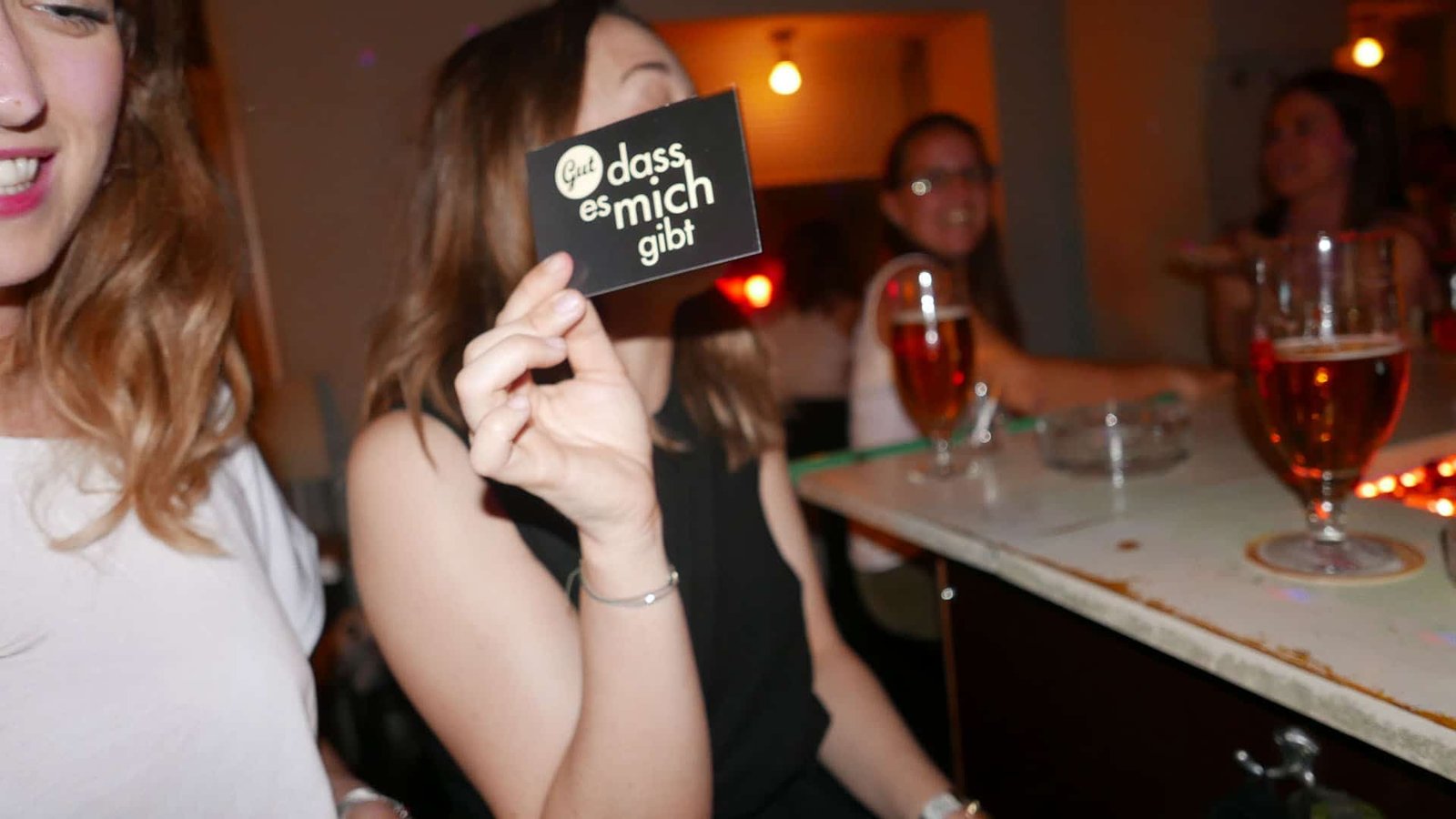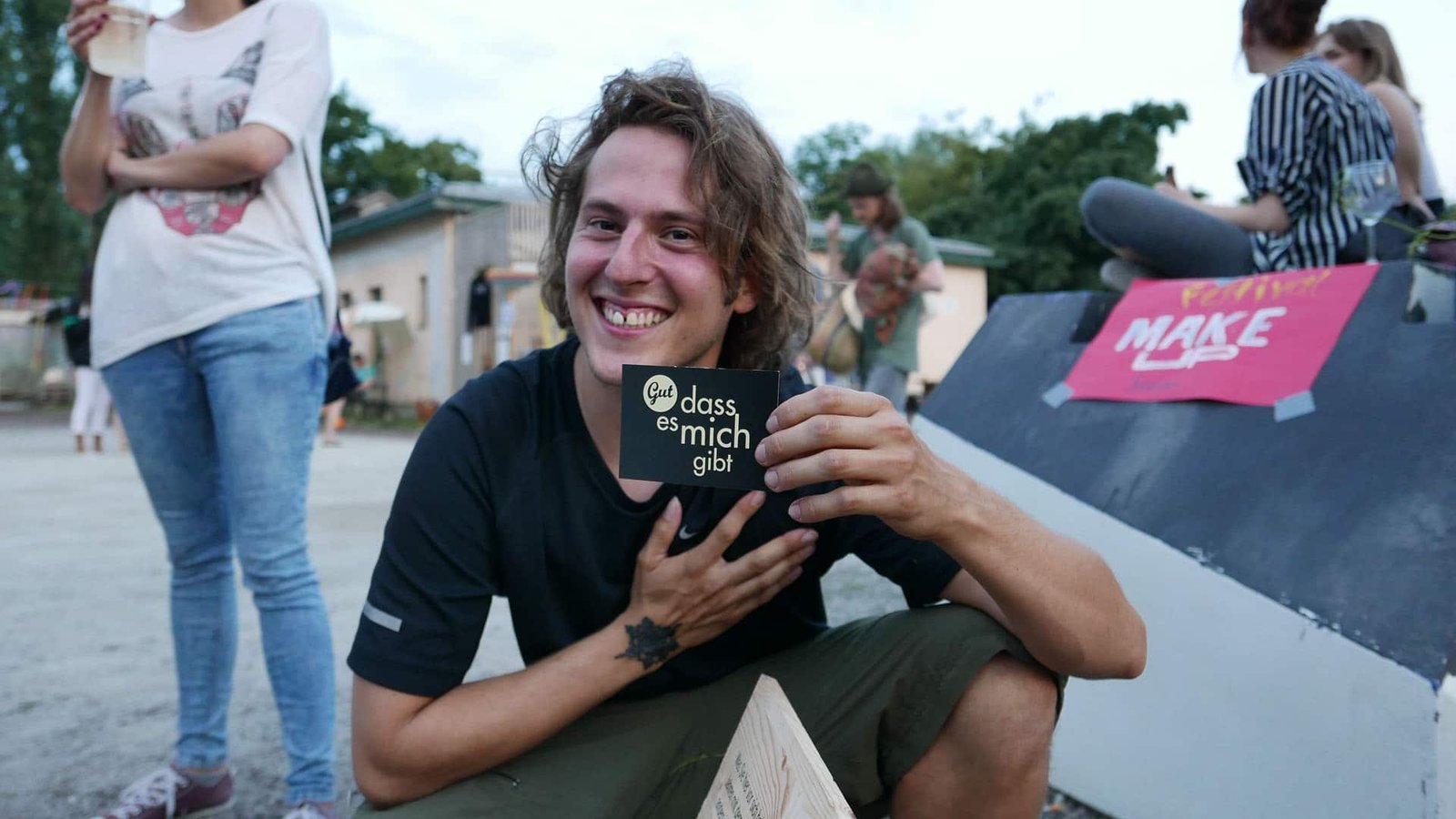Unsere Einladungskampagne bestand darin, auf Menschen zuzugehen und ihnen zu sagen: Gut, dass es Dich gibt! Mit der Überreichung des ‚Gut, dass es mich gibt‘ Kärtchens haben wir wahnsinnig viele wunderbare und berührende Momente erlebt. Wir konnten den Spirit of human rights and empowerment spüren.